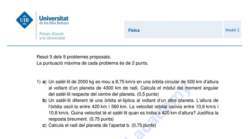 Examen de Física selectividad Islas Baleares — Ordinaria 2020