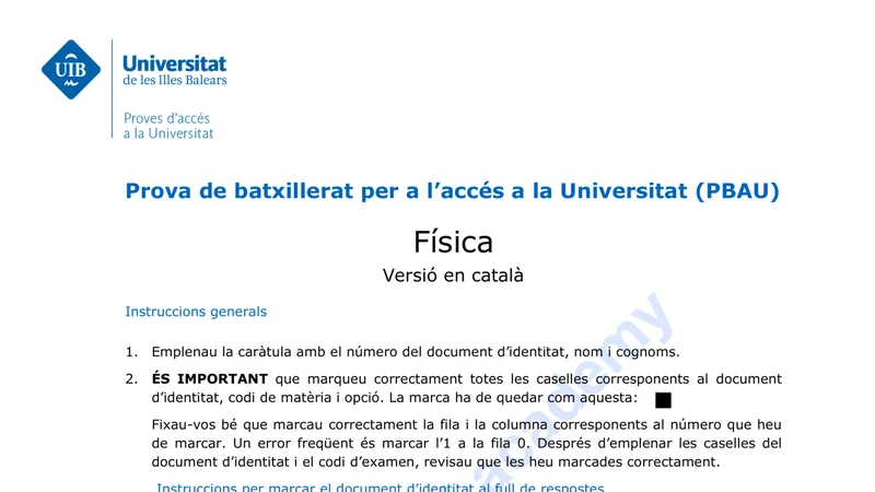 Enunciado oficial del examen de Física de la convocatoria extraordinaria de 2022 de la PBAU/PAU de Baleares. PDF de 0.4 MB. Descarga gratuita y sin registro. ¿Preparando la selectividad? Calcula tu nota estimada o consulta la guía completa de selectividad 2026. Encuentra todos los exámenes de Física en Baleares o explora las 17 comunidades autónomas.