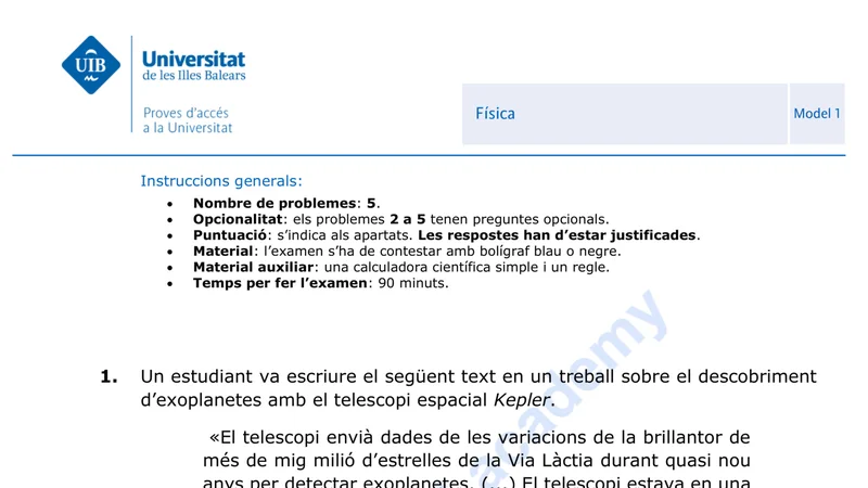 Enunciado oficial del examen de Física de la convocatoria extraordinaria de 2025 de la PBAU/PAU de Islas Baleares. PDF de 0.4 MB. Descarga gratuita y sin registro. ¿Preparando la selectividad? Calcula tu nota estimada o consulta la guía completa de selectividad 2026. Encuentra todos los exámenes de Física en Islas Baleares o explora las 17 comunidades autónomas.