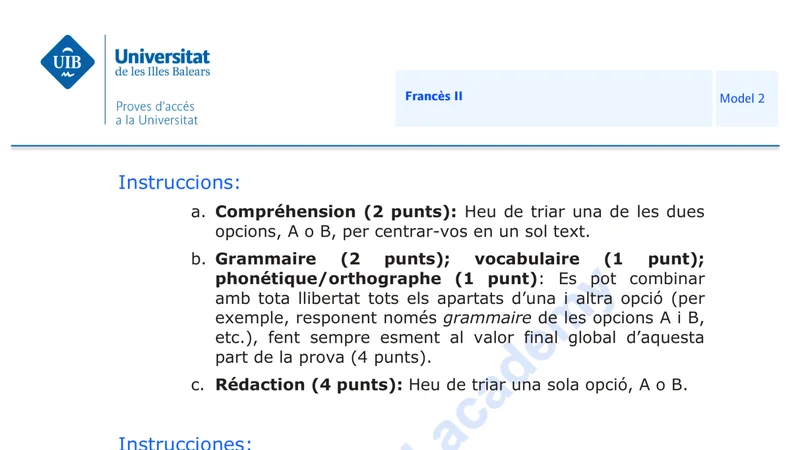 Reservar clase gratis →Examen de Francés selectividad Islas Baleares (Ordinaria 2020)