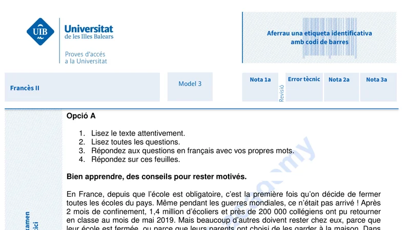 Reservar clase gratis →Examen de Francés selectividad Islas Baleares (Ordinaria 2021)
