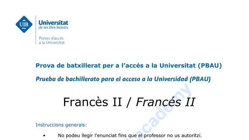 Reservar clase gratis →Examen de Francés selectividad Islas Baleares (Ordinaria 2022)