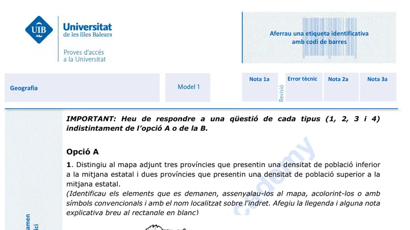 Reservar clase gratis →Examen de Geografía selectividad Islas Baleares (Extraordinaria 2024)