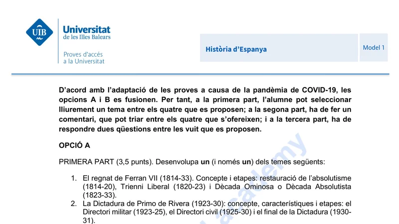 Examen de Historia de España selectividad Islas Baleares — Ordinaria 2023
