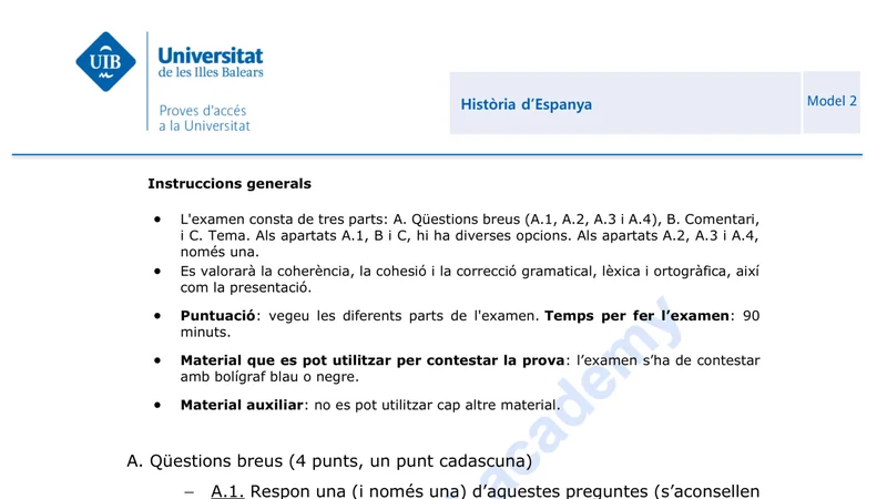Reservar clase gratis →Examen de Historia de España selectividad Baleares (Ordinaria 2025)