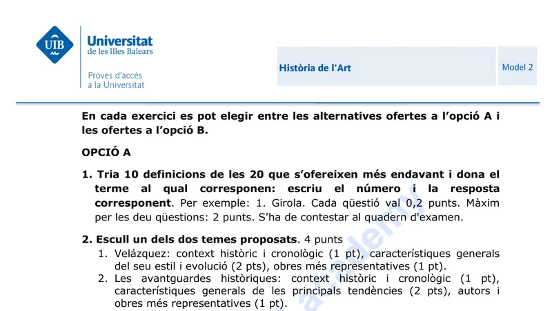 Examen de Historia del Arte selectividad Islas Baleares — Ordinaria 2020