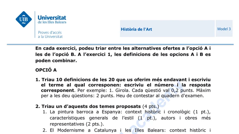 Más exámenes de Historia del Arte en Islas Baleares