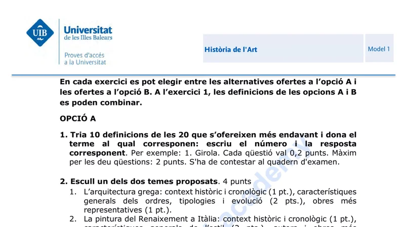 Reservar clase gratis →Examen de Historia del Arte selectividad Islas Baleares (Ordinaria 2023)