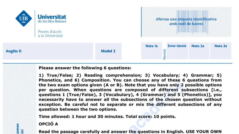 Reservar clase gratis →Examen de Inglés selectividad Baleares (Ordinaria 2024)