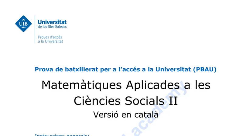Enunciado oficial del examen de Matemáticas Aplicadas CCSS de la convocatoria ordinaria de 2022 de la PBAU/PAU de Islas Baleares. PDF de 0.9 MB. Descarga gratuita y sin registro. ¿Preparando la selectividad? Calcula tu nota estimada o consulta la guía completa de selectividad 2026. Encuentra todos los exámenes de Matemáticas Aplicadas CCSS en Islas Baleares o explora las 17 comunidades autónomas.