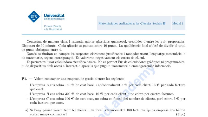 Reservar clase gratis →Examen de Matemáticas CCSS selectividad Baleares (Ordinaria 2023)