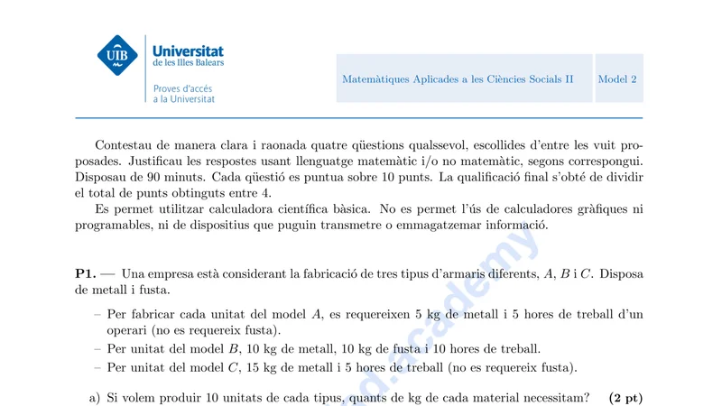 Reservar clase gratis →Examen de Matemáticas Aplicadas CCSS selectividad Islas Baleares (Ordinaria 2024)