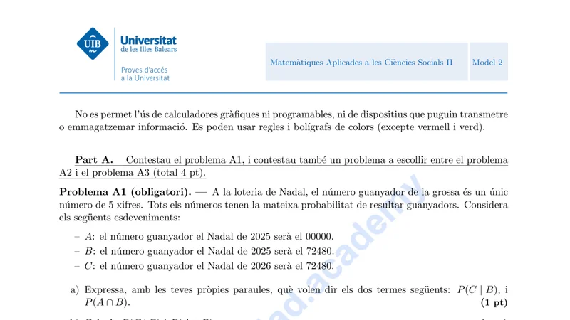 Examen PAU Matemáticas CCSS selectividad Baleares — Ordinaria 2025