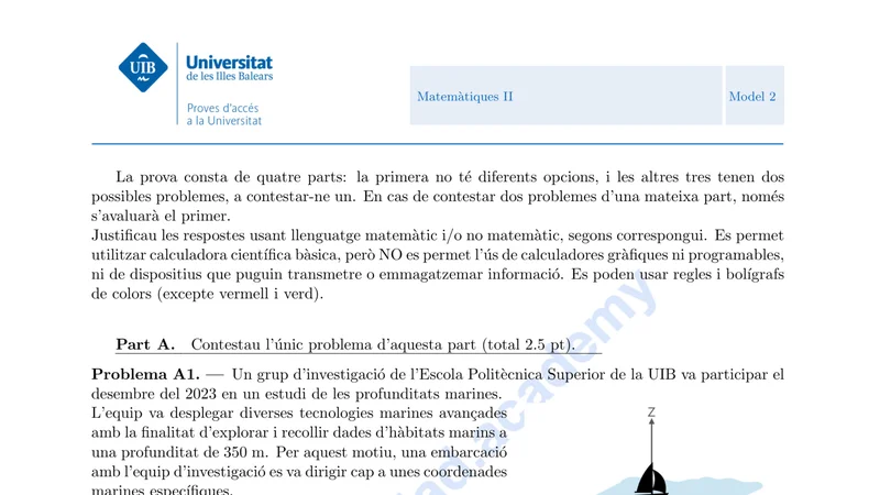 Reservar clase gratis →Examen de Matemáticas II selectividad Baleares (Ordinaria 2025)