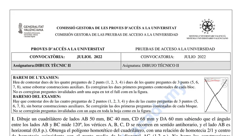 Reservar clase gratis →Examen de Dibujo Técnico II selectividad C. Valenciana (Extraordinaria 2022)