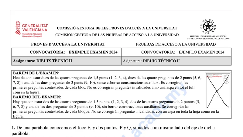 Examen de Dibujo Técnico II selectividad C. Valenciana — Ordinaria 2024