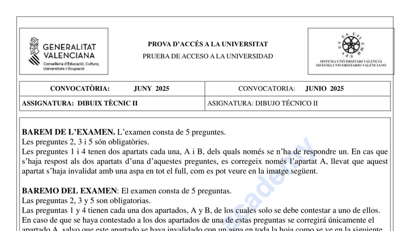 Examen de Dibujo Técnico II selectividad C. Valenciana — Ordinaria 2025