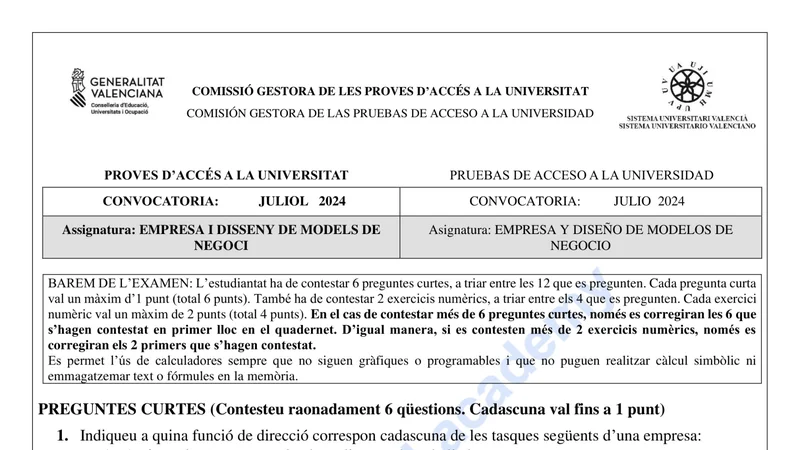 Reservar clase gratis →Examen de Economía selectividad C. Valenciana (Extraordinaria 2024)