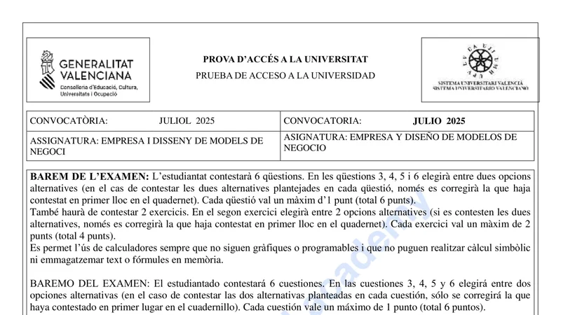 Reservar clase gratis →Examen de Economía selectividad C. Valenciana (Extraordinaria 2025)