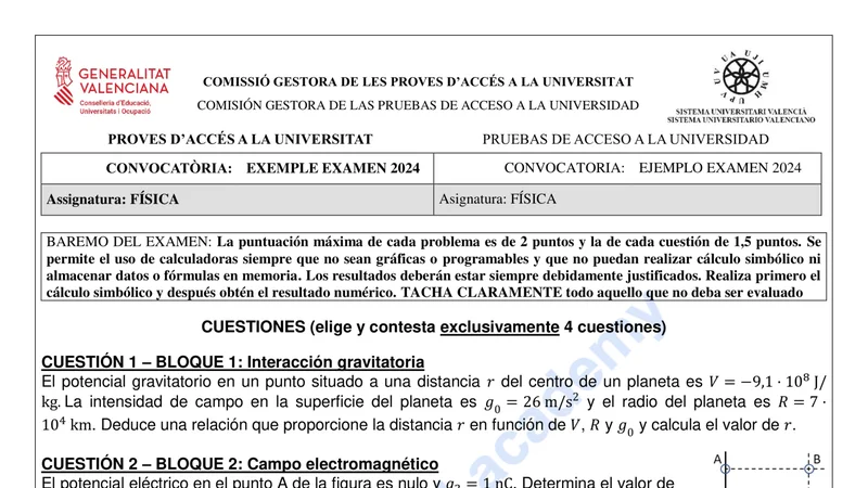 Examen de Física selectividad C. Valenciana — Ordinaria 2024