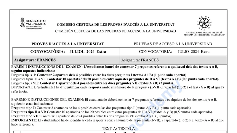 Examen de Francés selectividad C. Valenciana — Extraordinaria 2024