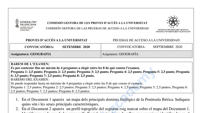 Reservar clase gratis →Examen de Geografía selectividad C. Valenciana (Extraordinaria 2020)