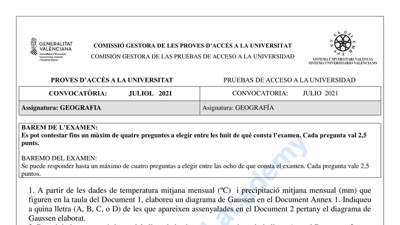 Reservar clase gratis →Examen de Geografía selectividad C. Valenciana (Extraordinaria 2021)