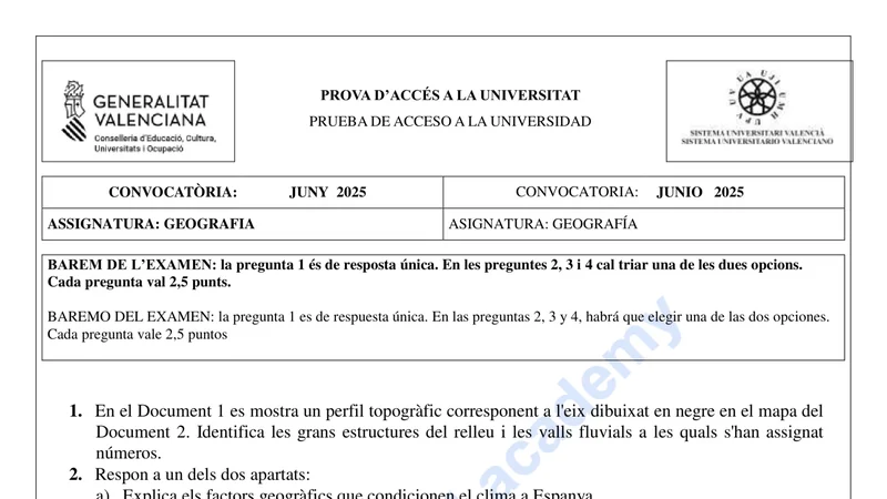 Reservar clase gratis →Examen de Geografía selectividad C. Valenciana (Ordinaria 2025)