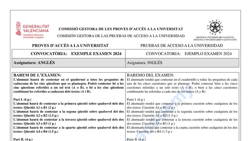 Examen PAU Inglés selectividad C. Valenciana — Ordinaria 2024