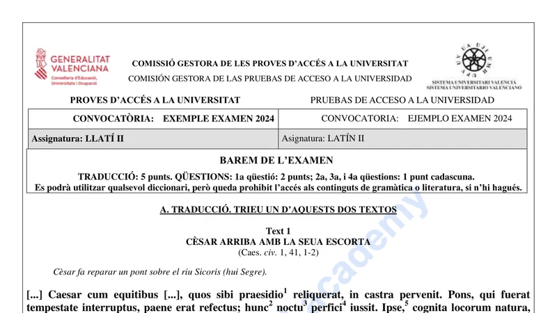 Examen PAU Latín II selectividad C. Valenciana — Ordinaria 2024