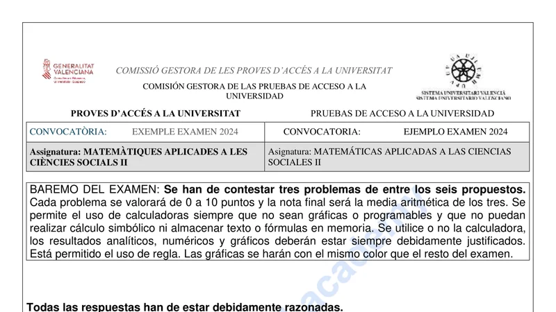 Reservar clase gratis →Examen de Matemáticas Aplicadas CCSS selectividad C. Valenciana (Ordinaria 2024)