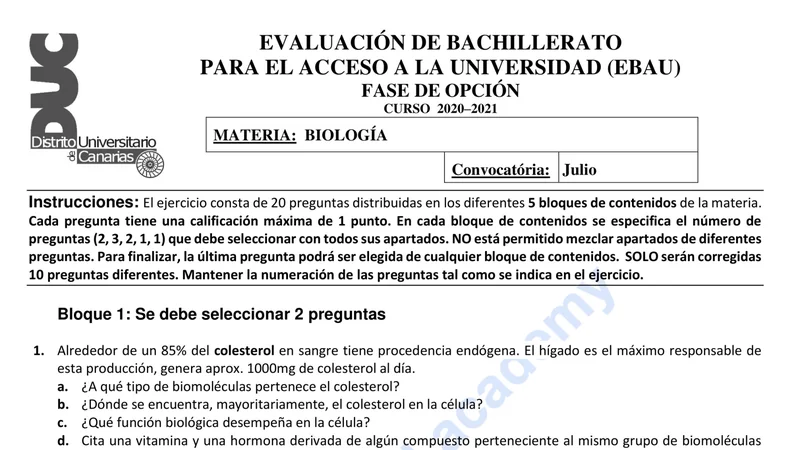 Reservar clase gratis →Examen de Biología selectividad Canarias (Extraordinaria 2021)