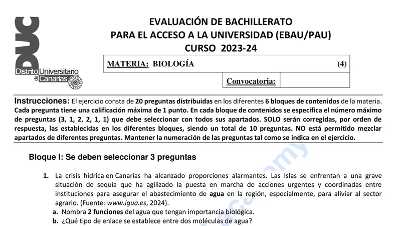 Examen de Biología selectividad Canarias — Extraordinaria 2024