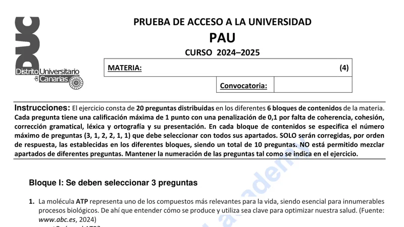 Examen de Biología selectividad Canarias — Extraordinaria 2025