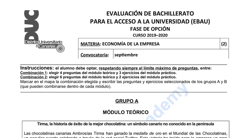 Examen de Economía de la Empresa selectividad Canarias — Extraordinaria 2020