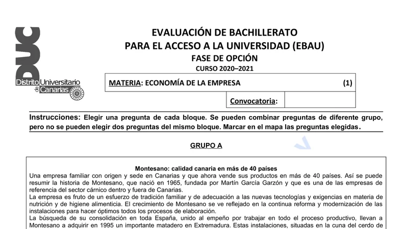 Reservar clase gratis →Examen de Economía de la Empresa selectividad Canarias (Ordinaria 2021)