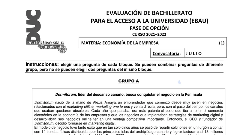 Reservar clase gratis →Examen de Economía de la Empresa selectividad Canarias (Extraordinaria 2022)