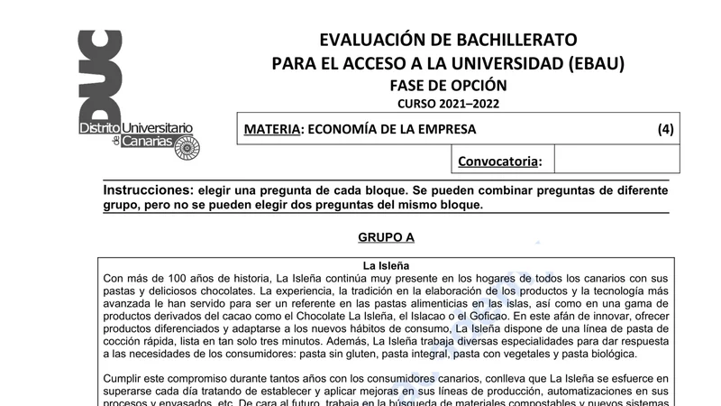 Reservar clase gratis →Examen de Economía de la Empresa selectividad Canarias (Ordinaria 2022)