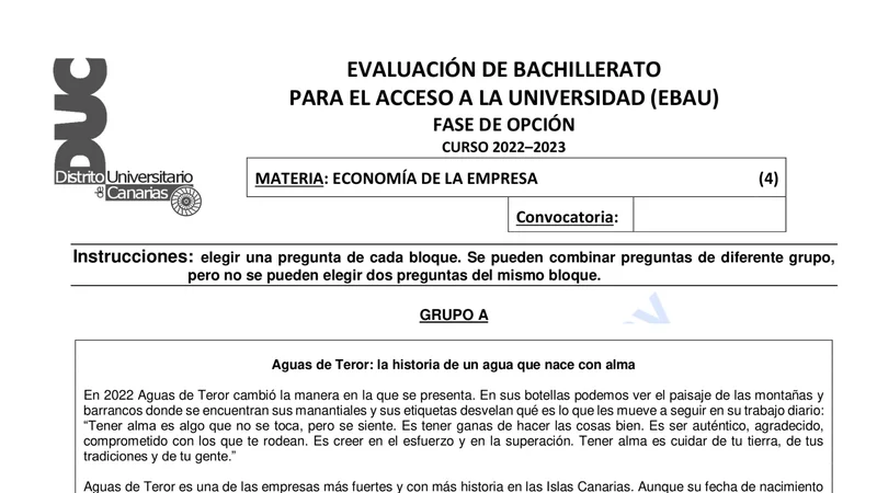 Reservar clase gratis →Examen de Economía de la Empresa selectividad Canarias (Ordinaria 2023)