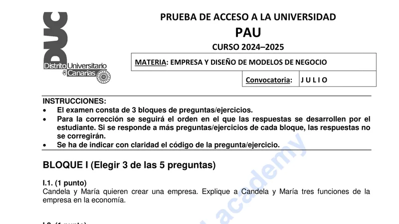Reservar clase gratis →Examen de Economía de la Empresa selectividad Canarias (Extraordinaria 2025)
