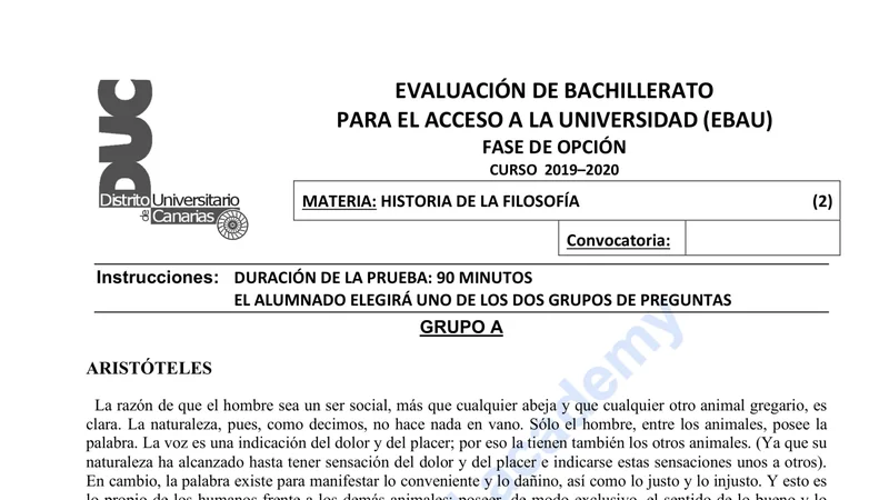 Examen de Historia de la Filosofía selectividad Canarias (Extraordinaria 2020)