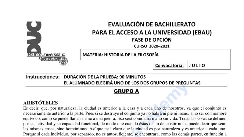 Examen de Historia de la Filosofía selectividad Canarias — Extraordinaria 2021