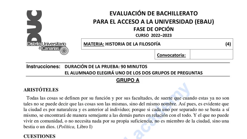 Examen de Historia de la Filosofía selectividad Canarias — Ordinaria 2023