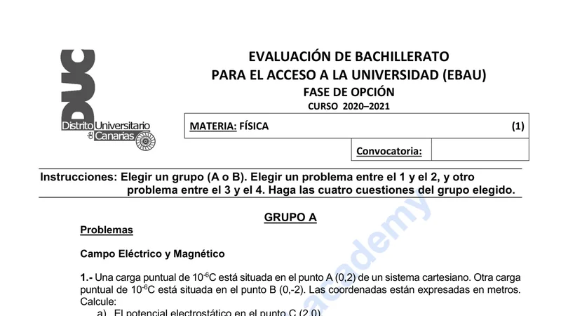 Reservar clase gratis →Examen de Física selectividad Canarias (Ordinaria 2021)