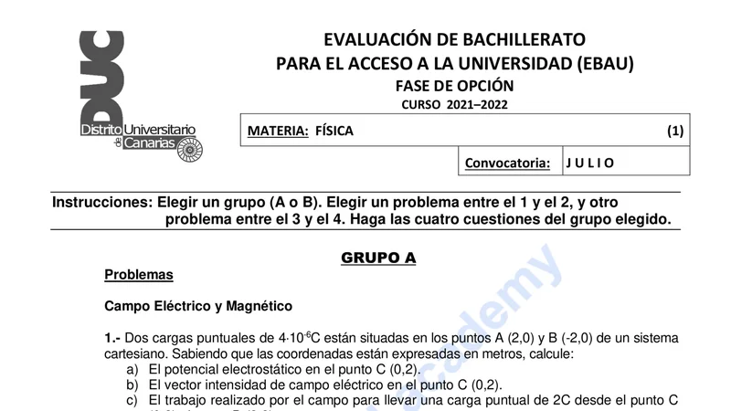 Reservar clase gratis →Examen de Física selectividad Canarias (Extraordinaria 2022)
