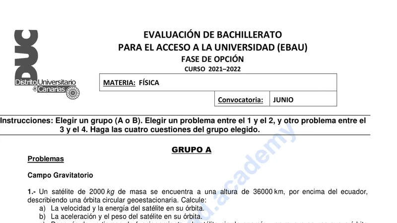 Reservar clase gratis →Examen de Física selectividad Canarias (Ordinaria 2022)