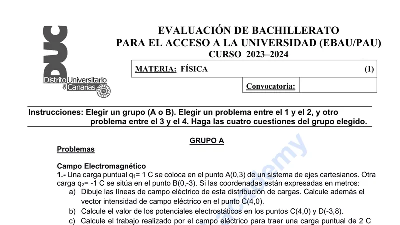 Examen de Física selectividad Canarias — Ordinaria 2024