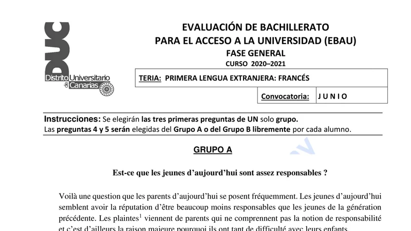 Examen de Francés selectividad Canarias — Ordinaria 2021