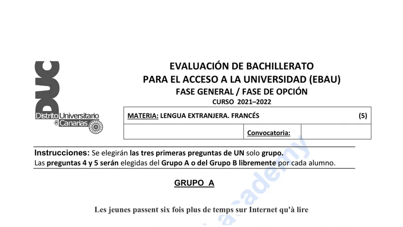 Reservar clase gratis →Examen de Francés selectividad Canarias (Extraordinaria 2022)