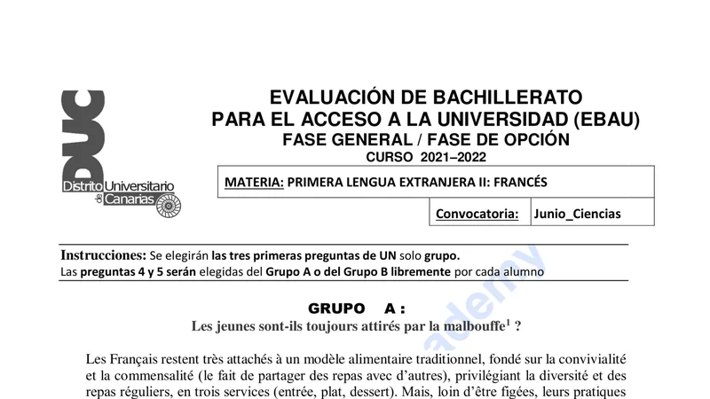 Reservar clase gratis →Examen de Francés selectividad Canarias (Ordinaria 2022)